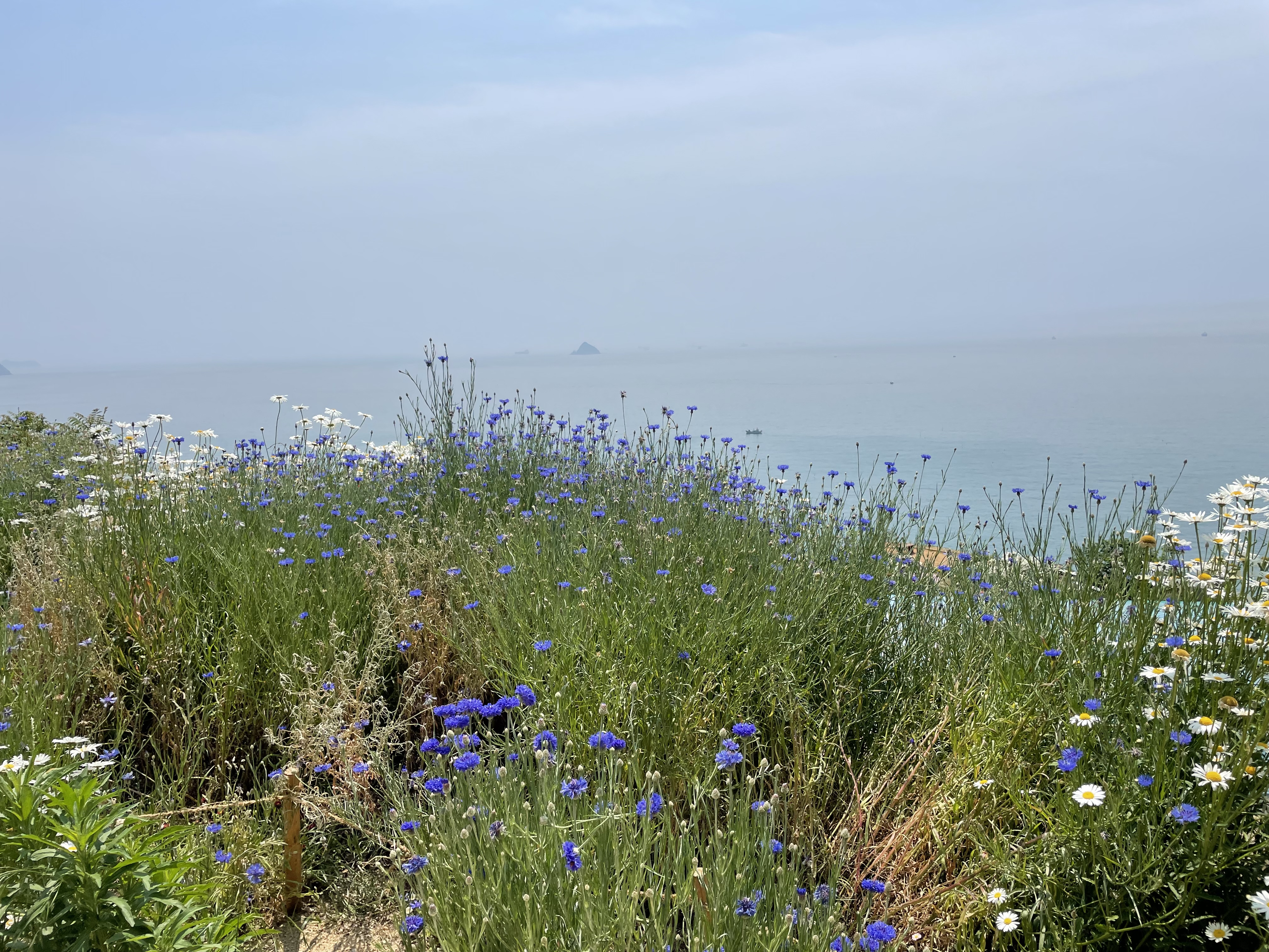 주문을 한 뒤 예쁘게 만발한 데이지 옆에
