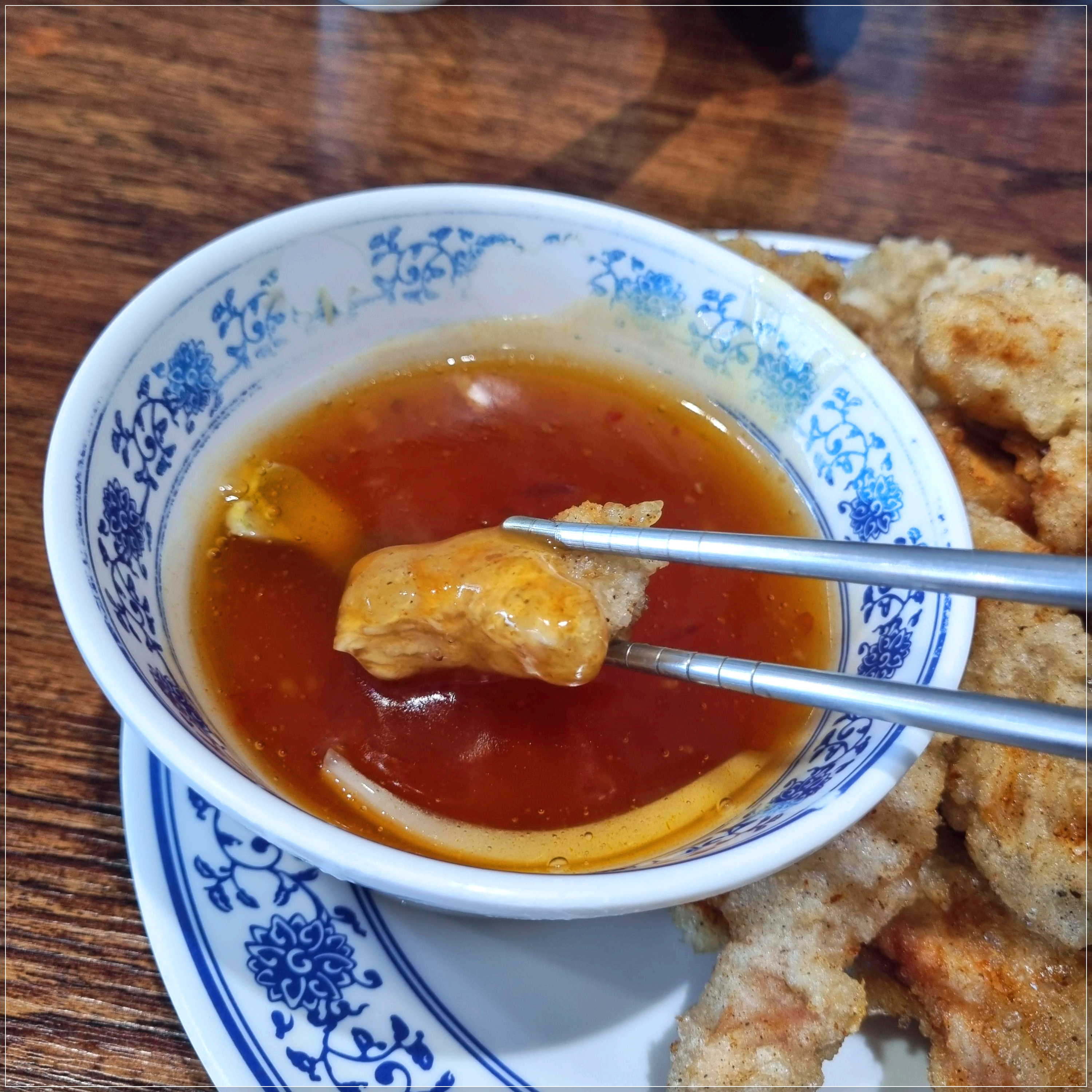 소스에 찍어서 먼저 먹어보았어요.