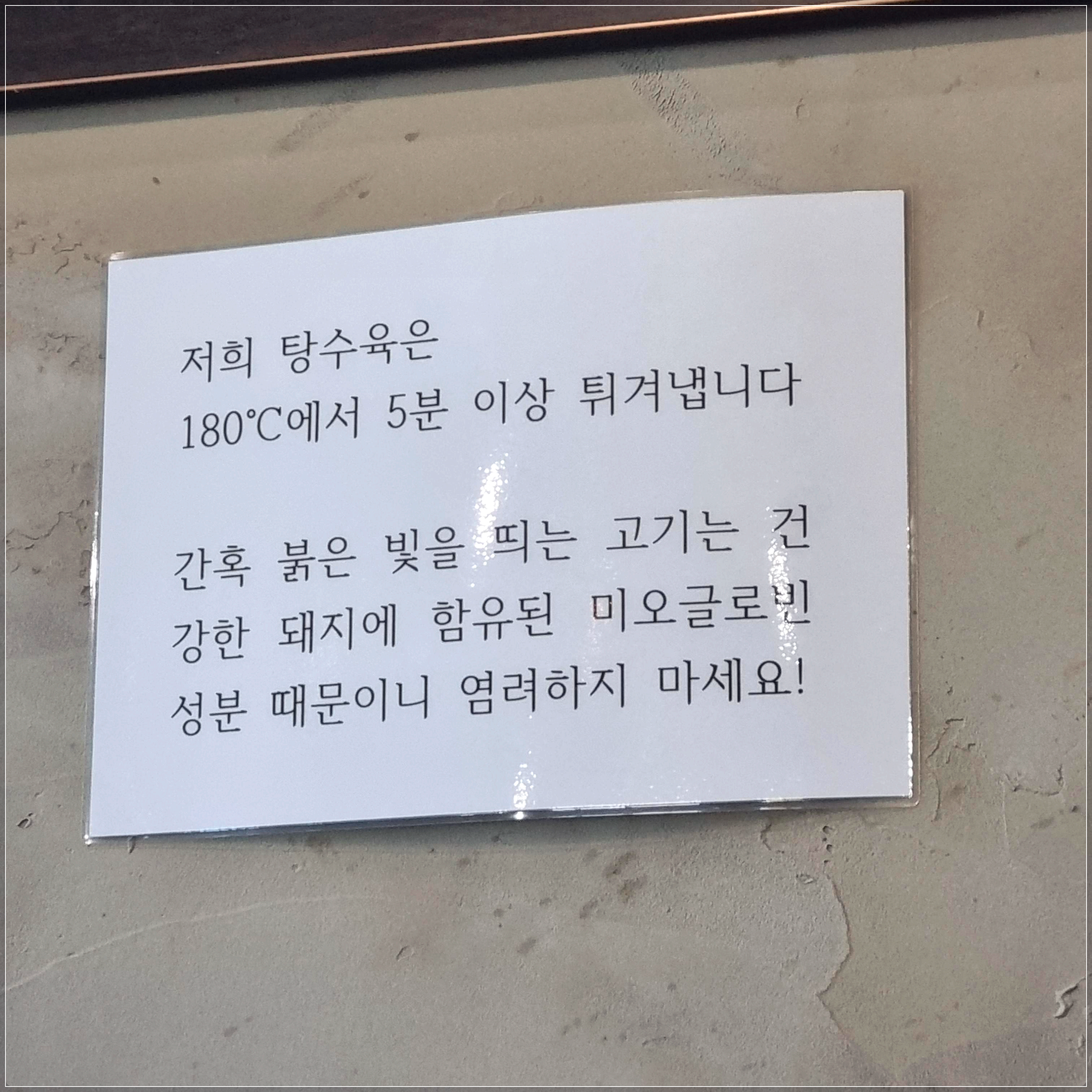 탕수육 속살이 약간 붉은빛을 띠는 것 같긴 했는데